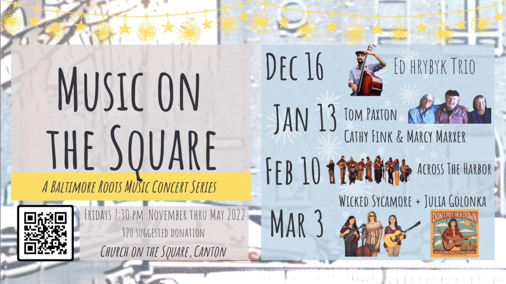 Actually, the entire Music on the Square concert series this season is turning out to be a great one. This year’s theme is “Baltimore Roots Music” and features artists deeply rooted in one of the many musical traditions alive in Baltimore and beyond. Concerts are on select Fridays of the month from November to May.